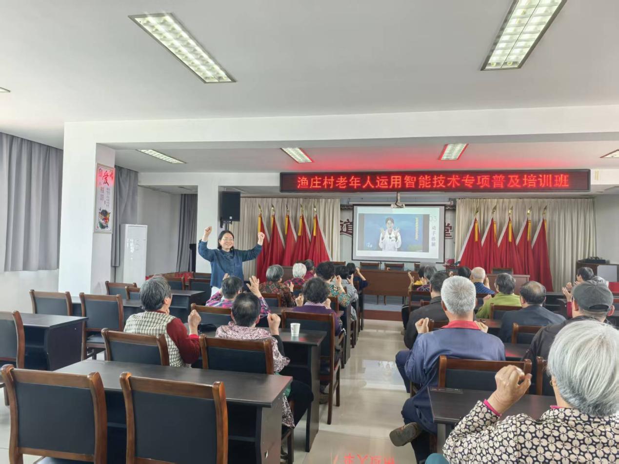 本次渔庄村培训中,孟亚俐副教授以生动互动的方式,指导老人用AI工具“豆包”一键解读体检报告,化医学指标为易懂信息;结合真实案例拆解AI换脸、语音诈骗等手法,传授防范技巧;并带领全场老人学做手指操,预防认知衰退。现场气氛热烈,老人积极实操,在轻松氛围中掌握智能技能与反诈知识,真正实现“科技有温度,助老零距离”。2024年以来,工作室团队连续三年为遥观镇20个行政村提供“智慧助老”送教上门。第一年以“故事+实操”模式推出《智慧就医》课程,教老人线上挂号、查报告;第二年将预防老年痴呆知识与微信手指操相结合,助力健脑与智能操作同步提升;第三年聚焦“体检报告看不懂、AI诈骗难防范”,创新推出“AI防诈+豆包解读报告+手指操”融合课程,实现健康守护、科技赋能、反诈护航全覆盖。